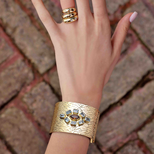 A gemstone cuff can be the element that ties everything together. It can convey mood or emotion- an be the statement piece that brings energy to any situation. Find the perfect piece and add balance with a gorgeous cuff.